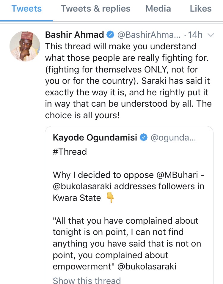 Reacting to the audio, Bashir Ahmad, Buhari’s Special Adviser on New Media in a post on Twitter agreed with all Saraki allegedly said.