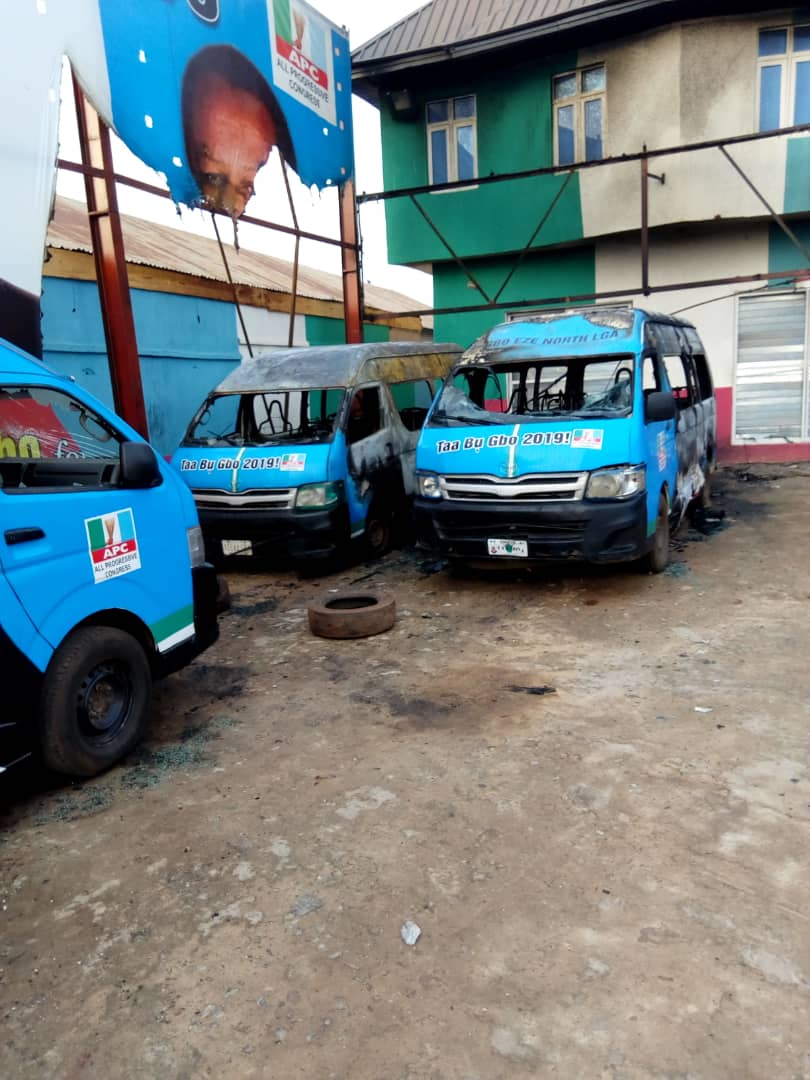 The windsreens of three other buses were smashed, creating a suspicion that the fire was deliberately set up by yet to be identified hoodlums or thugs.