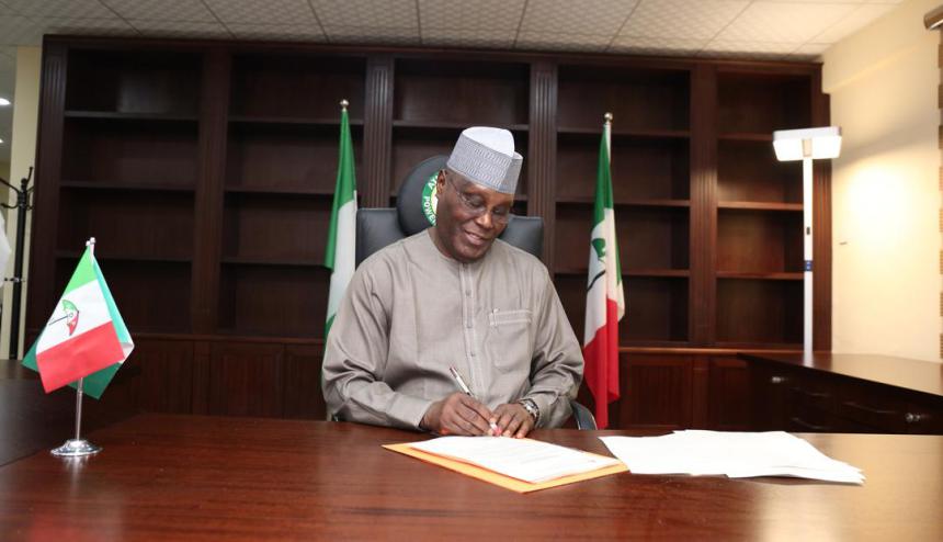 Atiku signed the document in the full glare of members of the Peace Committee headed by a former Head of State, Gen. Abdulsalami Abubakar (rtd), in Abuja on Wednesday.