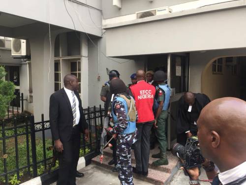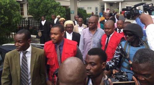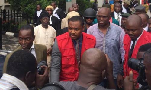 Ayodele Fayose, Governor of Ekiti State, is at the Federal High Court, Ikoyi, Lagos, to answer to charges of corruption filed against him by the Economic and Financial Crimes Commission (EFCC).