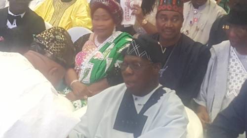 Obasanjo arrived at the hall at about 2:00pm, with the crowd hailing in deafening shouts of “Baba, Baba, Baba”. Oshiomole, who also walked in few minutes after Obasanjo, went straight to the celebrant, Goodluck Jonathan, and exchanged greetings him while people were shouting “Osho Baba, Osho Baba, Osho Baba”.
