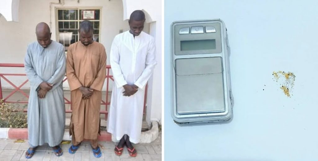 Kayayyakin da aka samu tare da su sun haɗa da na’urar auna zinare da kuma wani zinare da suka haƙo.