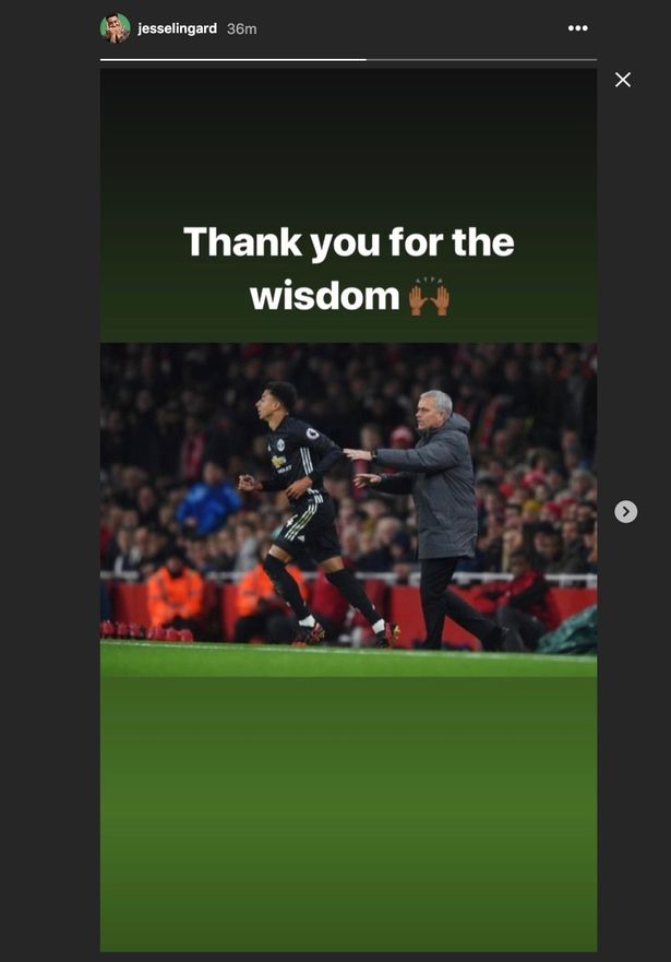 Lingard wrote: “Thank you for the wisdom,” along with a picture of Mourinho giving him instructions from the touchline.