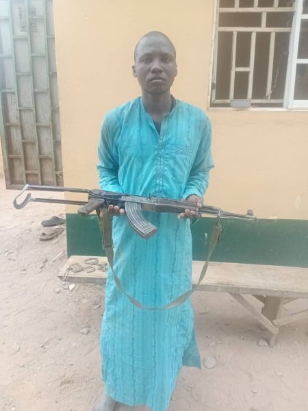 A cewar majiyar bayan samun nasarar kama shi an gano bindiga kirar AK-47 guda a tare da shi tare da harsashi da kuma kuɗi naira 4500.