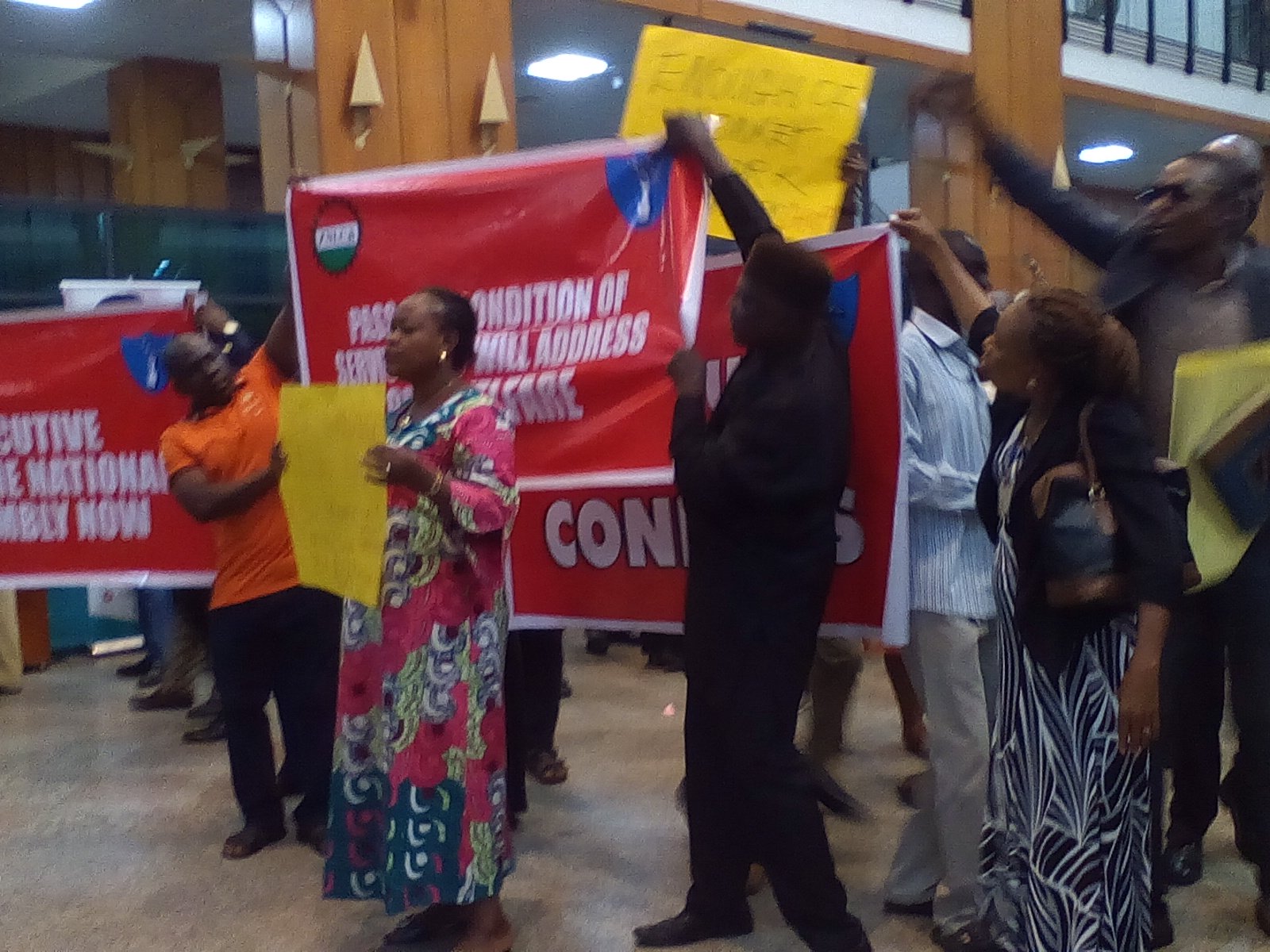 Speaking with DAILY POST while the protest was on-going in Abuja, Hon. Ike Obiora, a parliamentary staff, lamented that the Clerk to the National Assembly was the problem, stating that avenues for dialogue explored by the staff did not yield results.