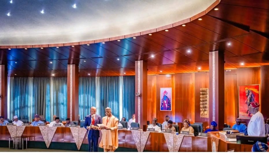 Shugaban kasa, Bola Ahmad Tinubu ya rantsar da Bernard Doro da Kingsley Udeh a matsayin ministoci a majalisar zartarwa ta tarayya a yayin wani gajeren biki da aka yi a fadar Ado Rock.