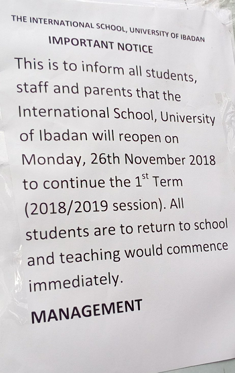 “Adequate measures should be put in place to forestall breakdown of law and order in the school. The Board of Governors be advised to reopen the school for academic activities on Monday, November 26, 2018.”