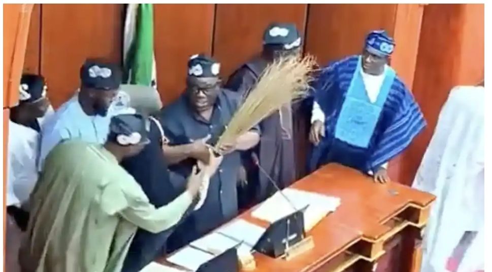 Bidiyon ya kuma nuna yan majalisar dauke da tsintsiya dake zama alamar jam’iyar APC.